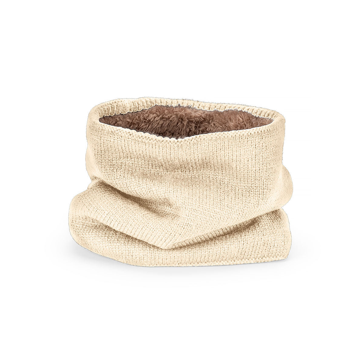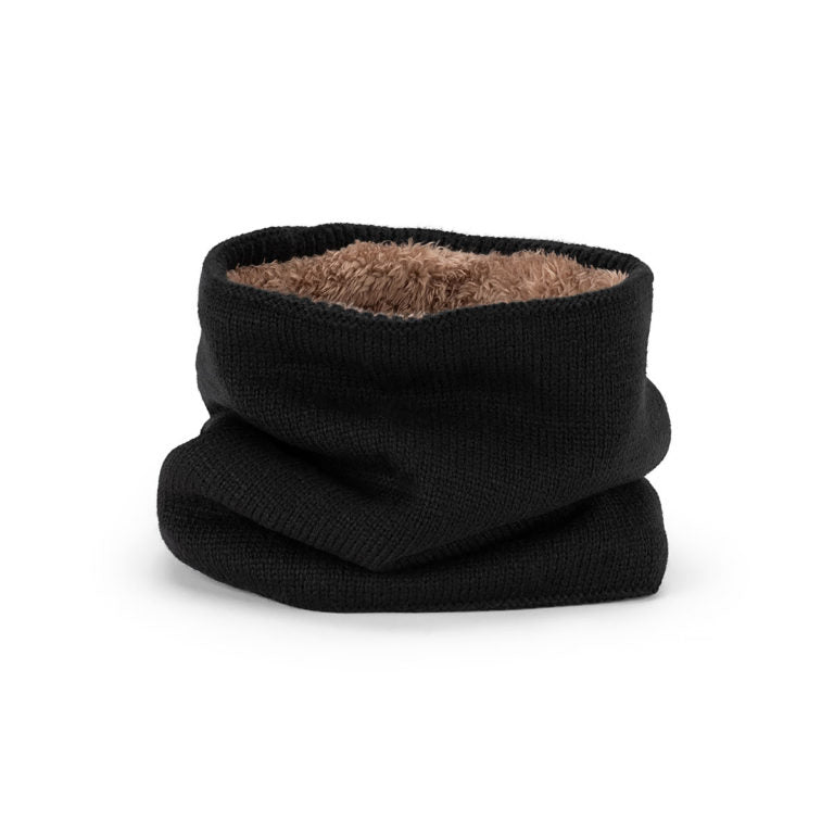 Its knitted construction allows for a secure yet flexible fit, while the plush lining adds an extra layer of softness and insulation. Ideal for outdoor wear during the colder seasons, it provides coverage and warmth without the bulk of a full scarf.