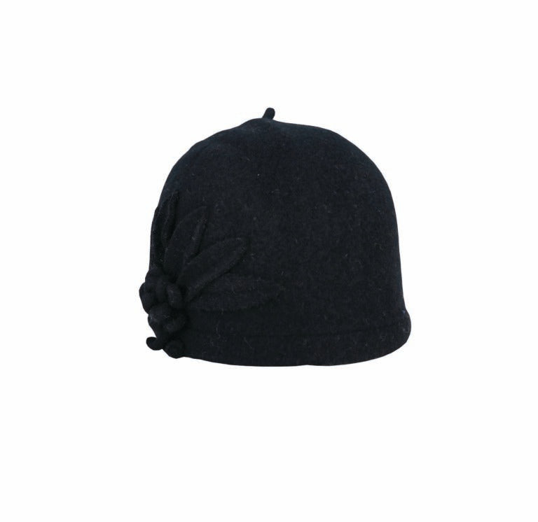 Clara Boiled Wool Pull-On Hat with Flower and Leaf Side Design