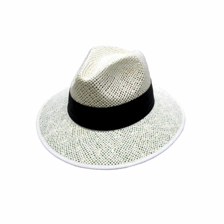 Desmond White Openweave Panama Bowls Hat with Cotton Under-Brim and Puggaree Band