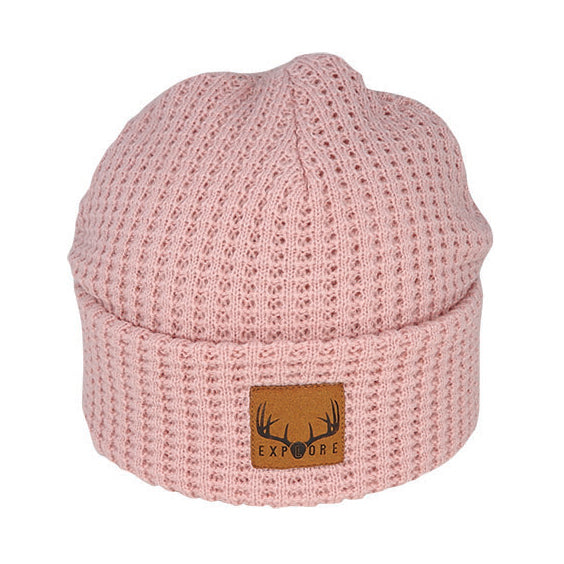 Georgie – Acrylic Waffle Knit Beanie with Suede Explore Patch