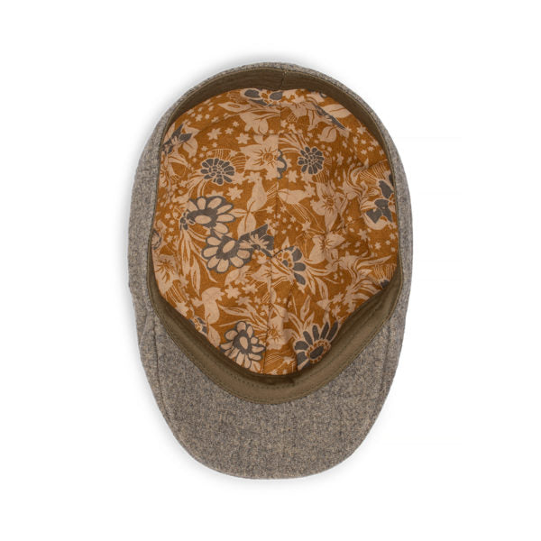 The interior is fully lined with printed cotton for added comfort and insulation, while the exterior showcases a versatile earthy tone suitable for pairing with seasonal attire. This cap is ideal for casual and semi-formal winter wear, offering both practicality and visual appeal.