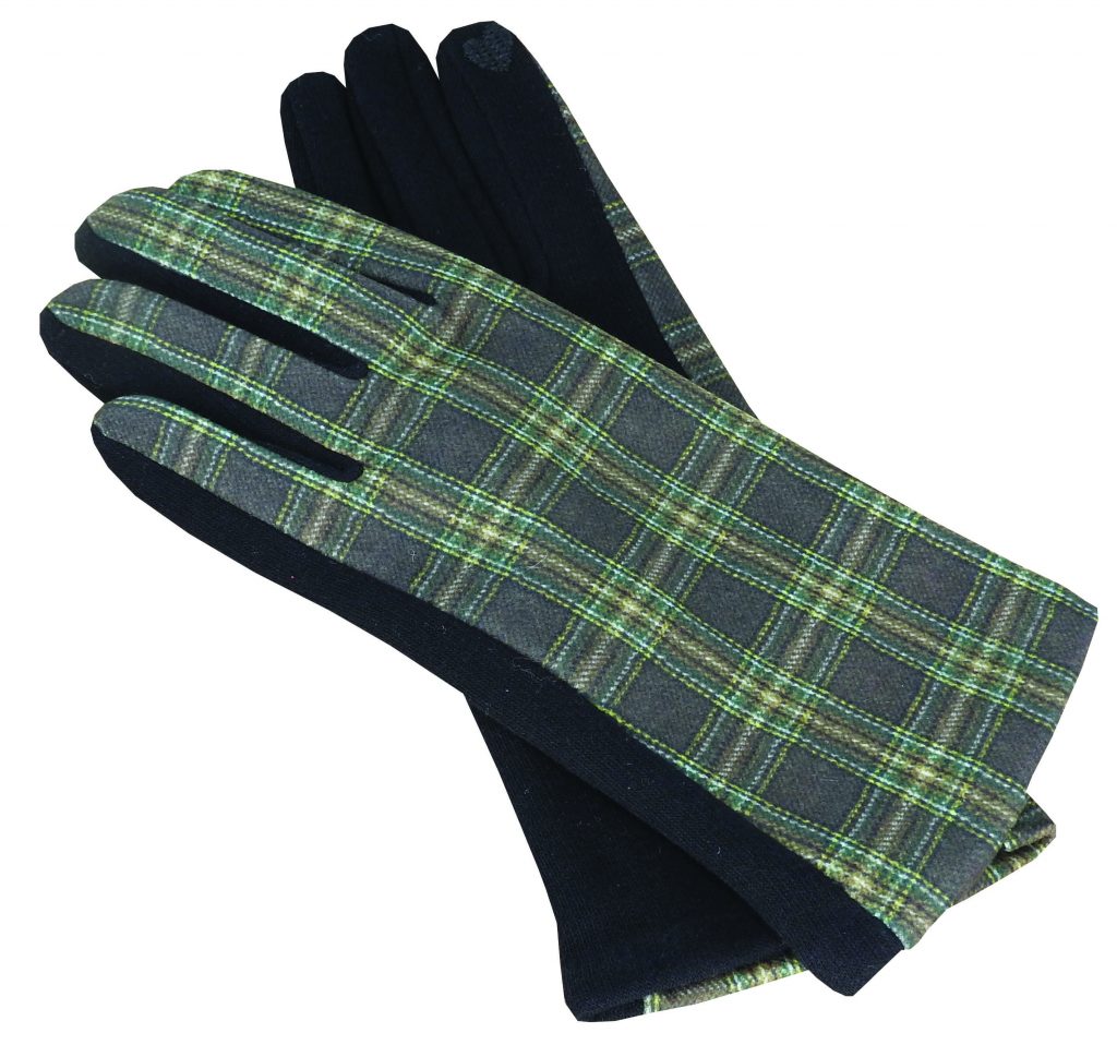 Polyester Stretch Gloves with Tartan Trim and Touchscreen Function