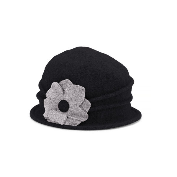 Ramsey Boiled Wool Pull-On Hat with Side Flower Detail